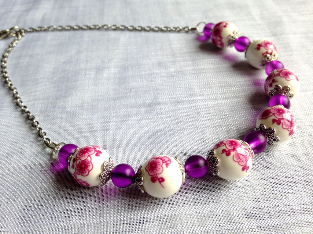 Colier margele portelan si sticla , accesorii inox