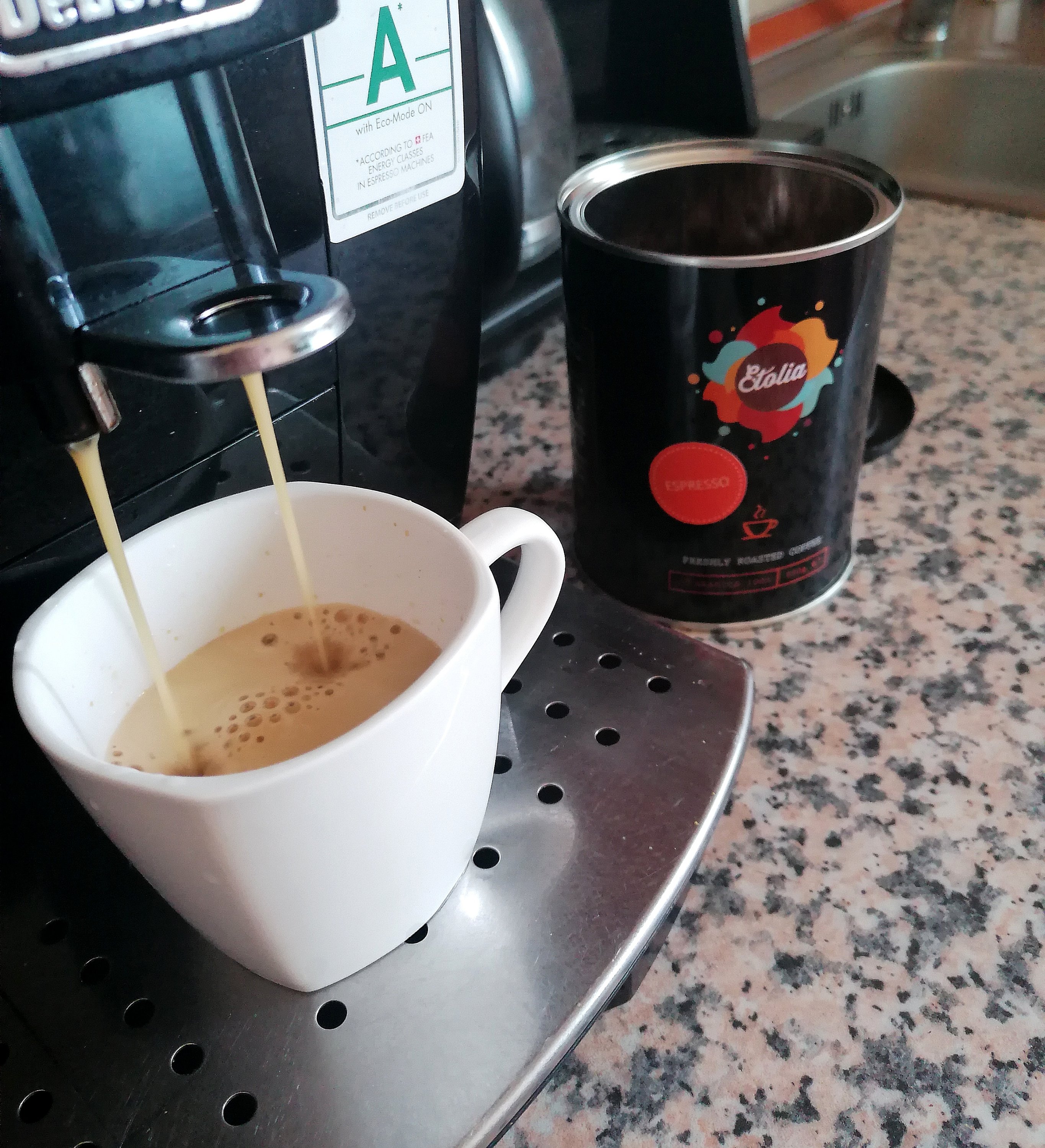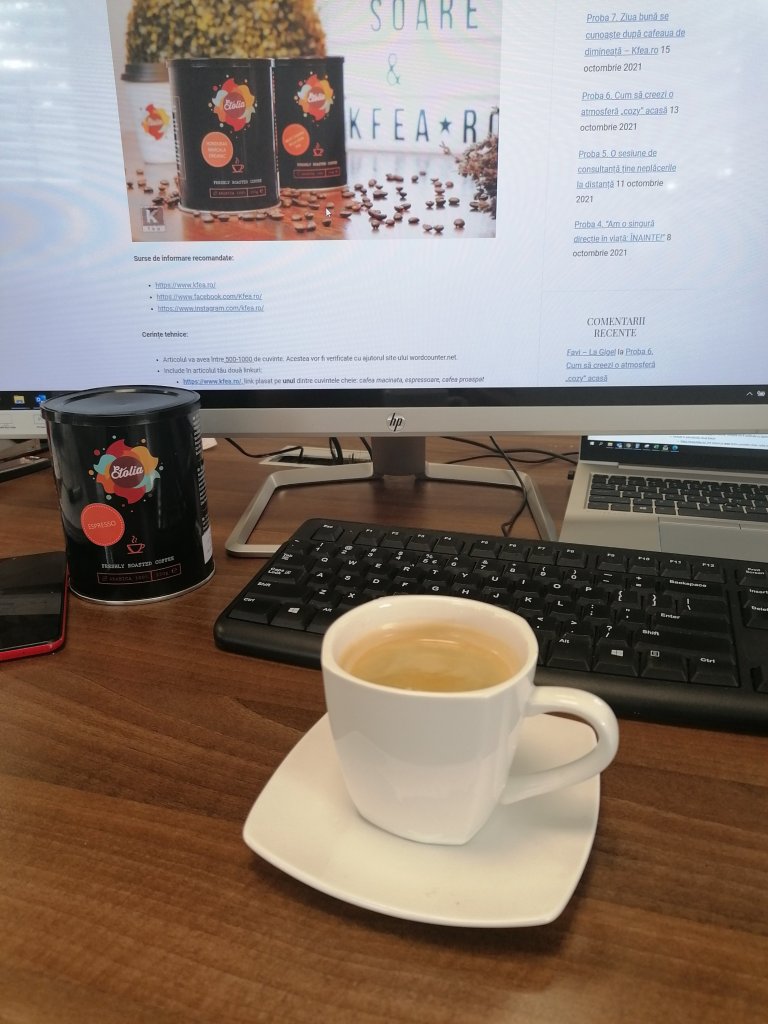 In jurul orei 12.00 simt că s-a consumat suficient din energia furnizată de cafeaua de dimineață. Este binevenită o scurtă pauză și îmi pregătesc cafeaua din cafea boabe la unul din cele două espressoare.