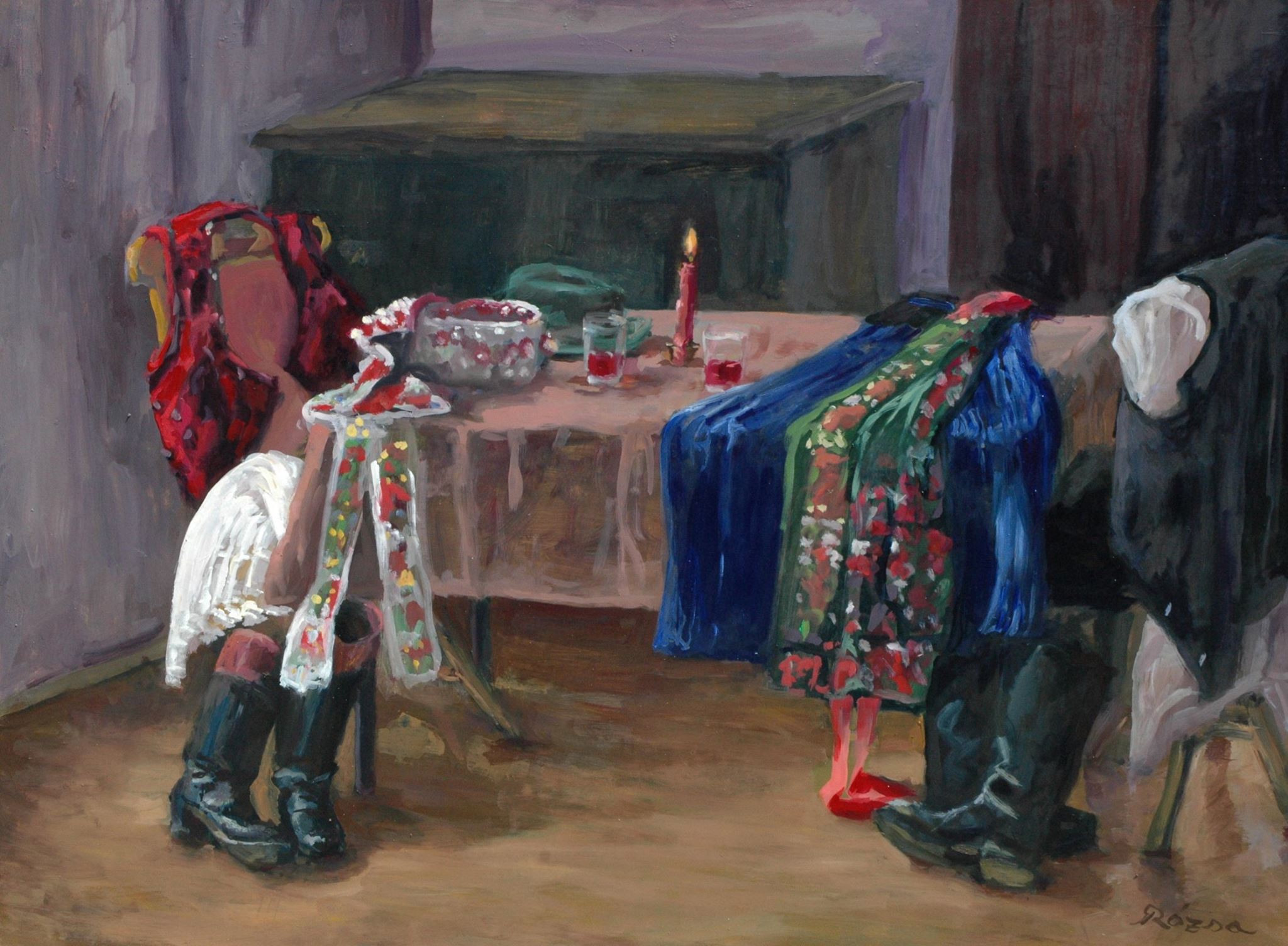 • Lucrări gândite, compuse, precum costumele din Țara Călatei, sau compoziția „Împărțirea pâinii”. Aceste picturi necesită mai mult timp, sunt realizate cu ocazia mai multor sesiuni. Aceste picturi sunt menite să radieze seriozitate.