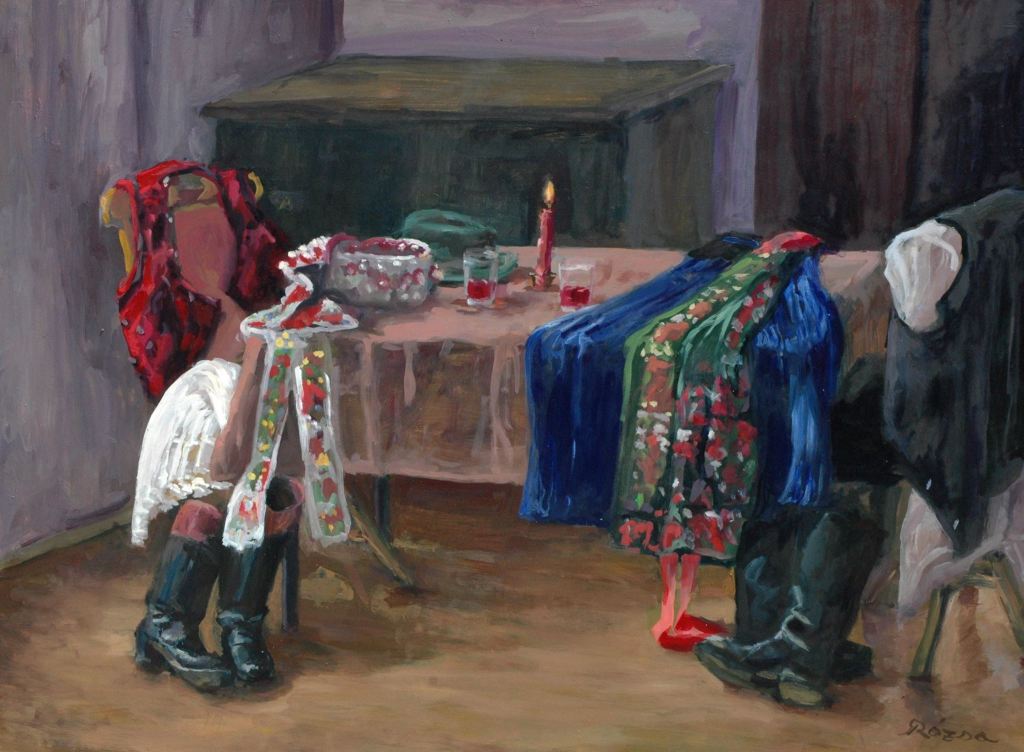Peisajele rurale, elementele de costum popular zonal și ocupațiile tradiționale prind viață în picturile lui, privim cu calm scenele de familie și naturile statice.