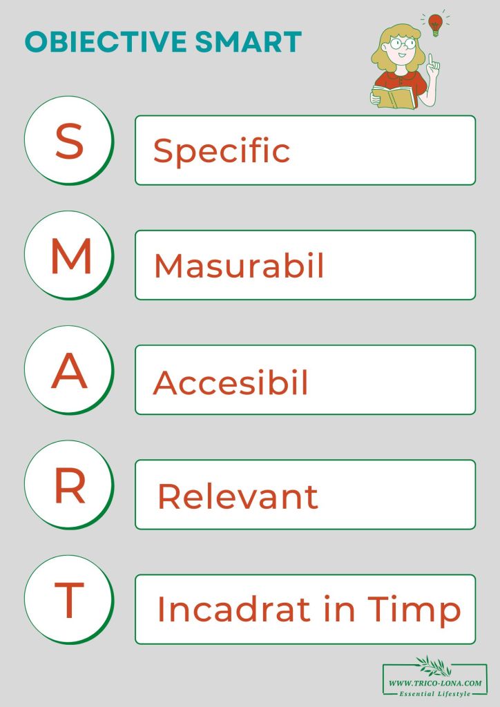 Obiectivele SMART ne ajută să ne ținem mai ușor de planuri, deoarece sunt detaliate și ne oferă puncte de control pentru succes. Atingerea punctelor de control asupra obiectivelor ne ajută să fim concentrați și motivați.