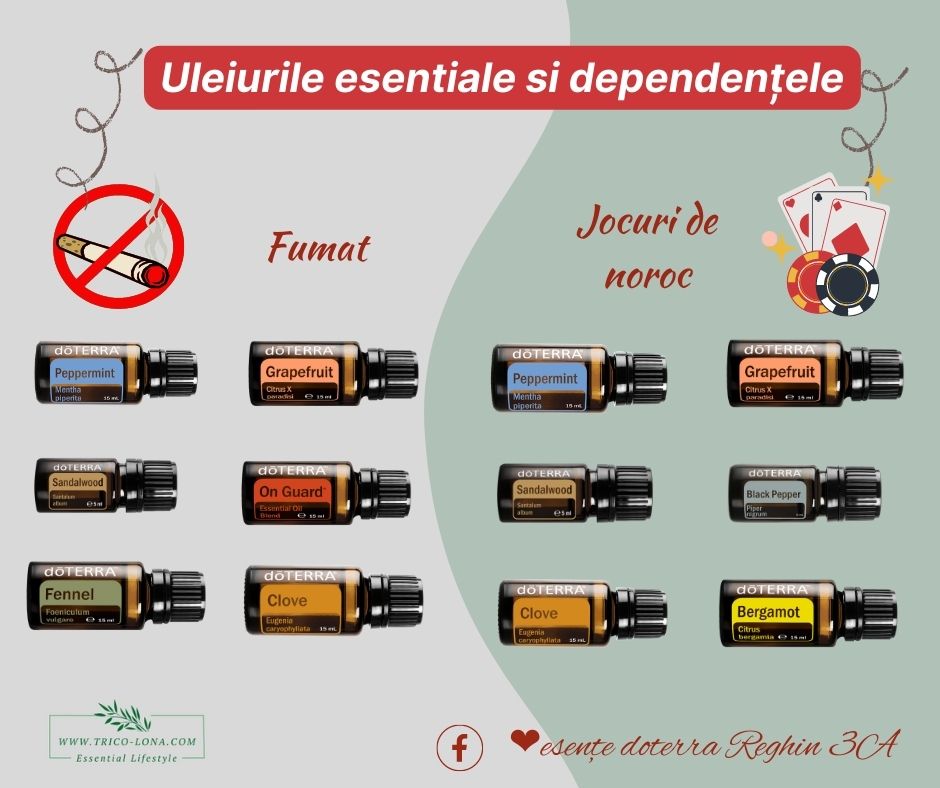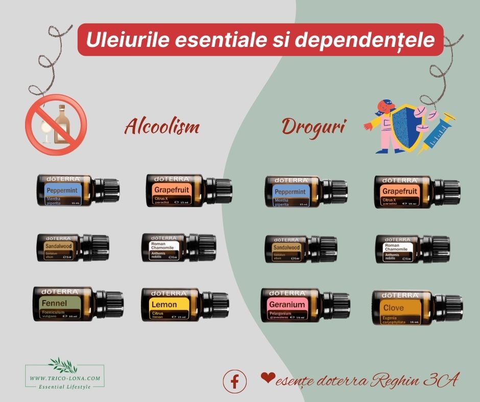Uleiurile esențiale pot fi parte integrantă din tratamentul dependenței, o formă de terapie care pot ajuta pacientul pe drumul către o viață fără dependență. În cazul în care pacientul se află deja sub un tratament, este necesară consultarea cu medicul.