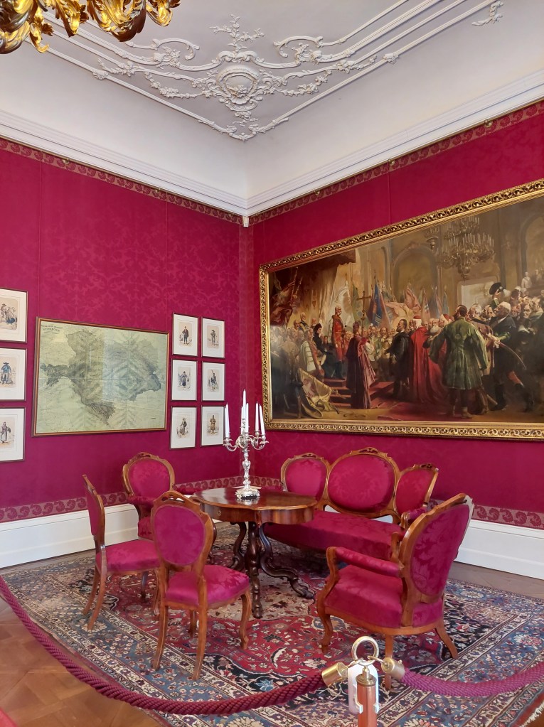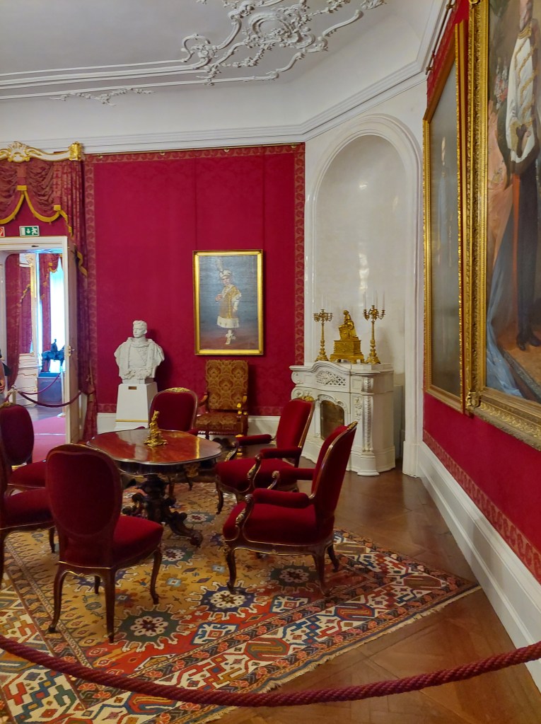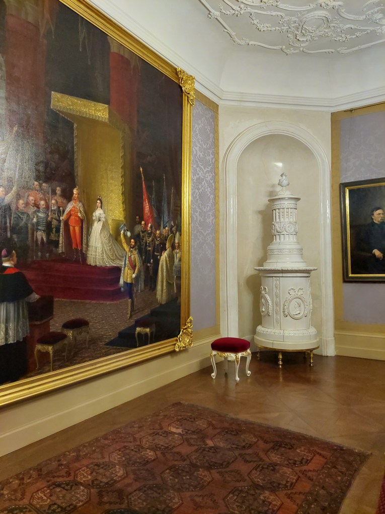 Galerie de imagini habsburgice Coridorul de la etaj este decorat cu o galerie de imagini înfățișând membrii familiei Habsburg – de la Mária Theresa la Regina Elisabeta. Caracteristica specială a galeriei este că pot fi vazute nu doar conducătorii acestei epoci, ci și membrii familiei.