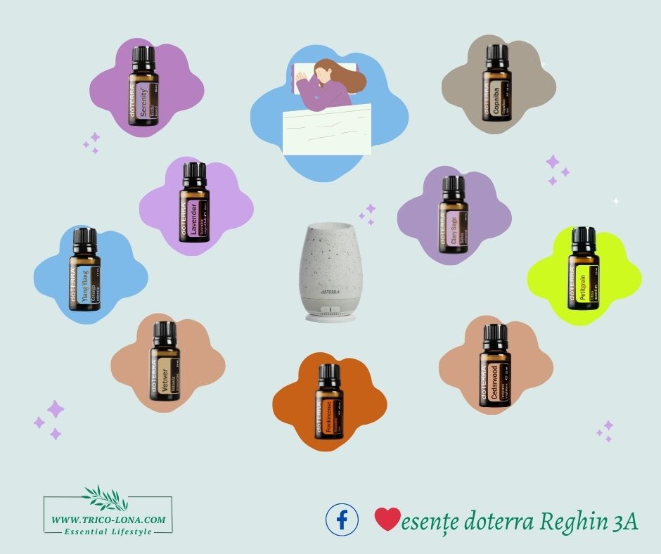 Important este să alegi uleiuri care te pot ajuta să promovezi un mediu ideal de odihnă: calm, liniștit și relaxant. Zeci de uleiuri esențiale au arome care pot ajuta la crearea unei atmosfere odihnitoare. Tot ce trebuie să faci este să găsești pe cele care îți plac și încorporează-le în rutina ta personală de culcare.
