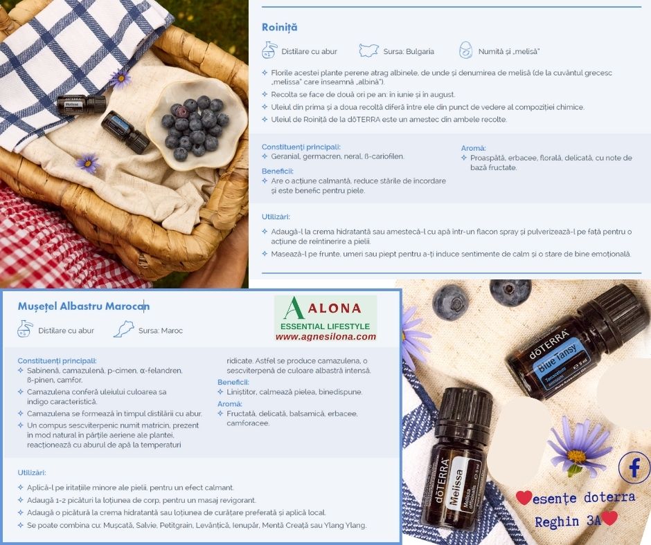 Roinița și Mușețelul Albastru Marocan calmează, regenerează și aduc acel „glow” natural, fără efort.
